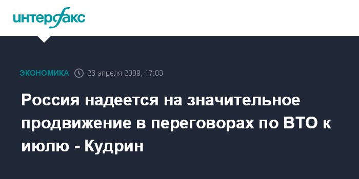 Россия надеется на значительное продвижение в переговорах по ВТО к июлю - Кудрин