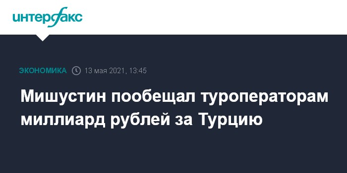 Москва. 13 мая. INTERFAX.RU - Премьер-министр Михаил Мишустин объявил, что в связи с потерями туроператоров из-за запрета на полеты в Турцию и Танзанию, правительство предлагает им новые меры поддержки.