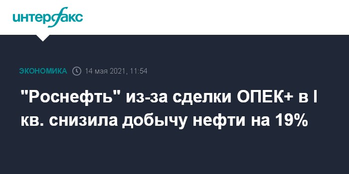 Москва. 14 мая. INTERFAX.RU - Добыча нефти "Роснефтью" в первом квартале 2021 года составила 3,7 млн баррелей в сутки, что на 19,2% меньше, чем за аналогичный период прошлого года, следует из отчета компании.