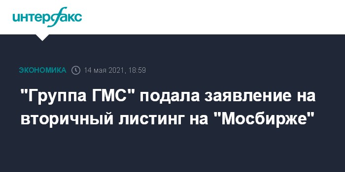 Москва. 14 мая. INTERFAX.RU - "Группа ГМС" (HMS Group) подала заявление о получении вторичного листинга своих глобальных депозитарных расписок (GDR) на "Московской бирже", следует из материалов торговой площадки.