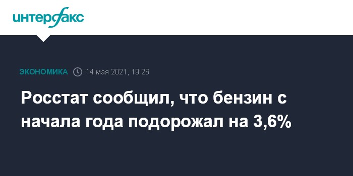 С начала года бензин подорожал к 11 мая на 3,6%, солярка - на 1,9%. Общая инфляция за этот период составила 3%.