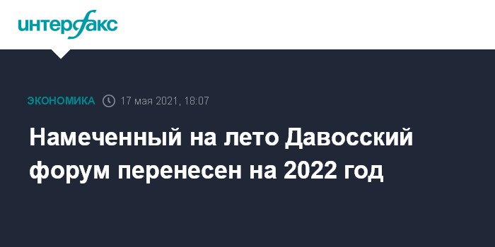Намеченный на лето Давосский форум перенесен на 2022 год