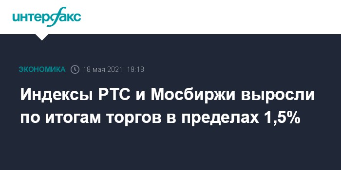 Индексы РТС и Мосбиржи выросли по итогам торгов в пределах 1,5%