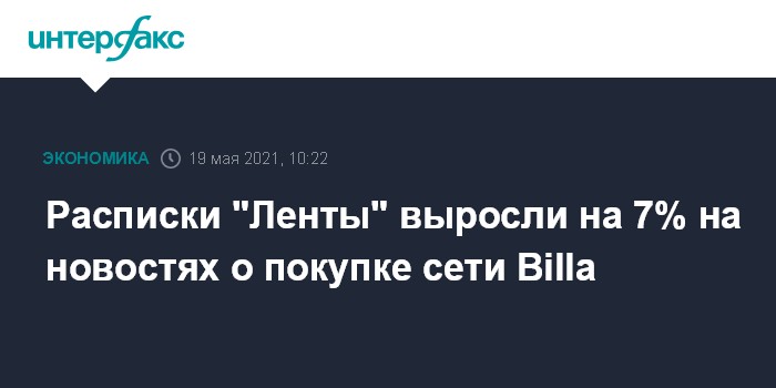 Москва. 19 мая. INTERFAX.RU - Глобальные депозитарные расписки (ГДР) ритейлера "Лента" выросли в начале торгов на "Московской бирже" в среду на 7% (до 250 рублей за штуку) на новостях о покупке сети супермаркетов Billa.