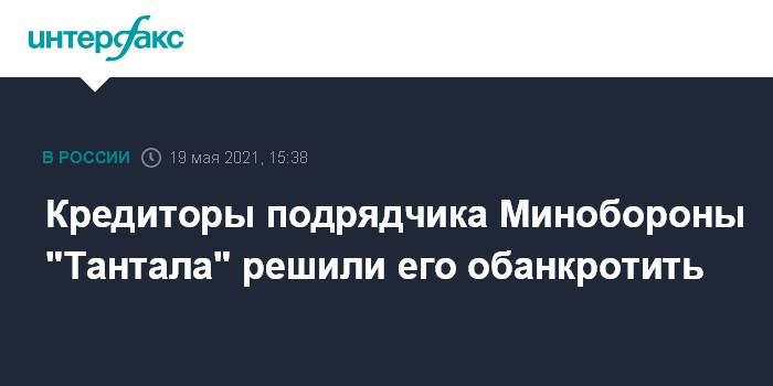 Кредиторы подрядчика Минобороны "Тантала" решили его обанкротить