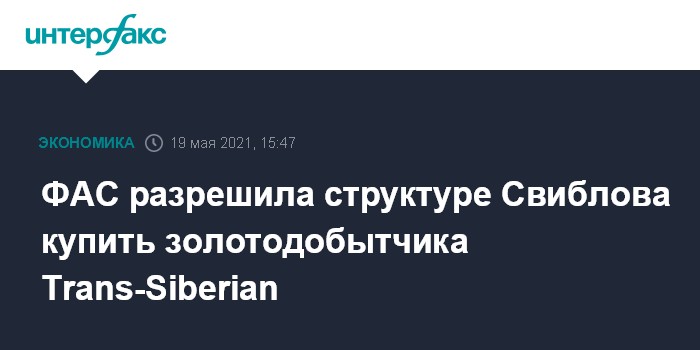 ФАС разрешила структуре Свиблова купить золотодобытчика Trans-Siberian