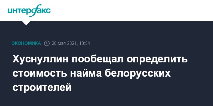 Хуснуллин пообещал определить стоимость найма белорусских строителей