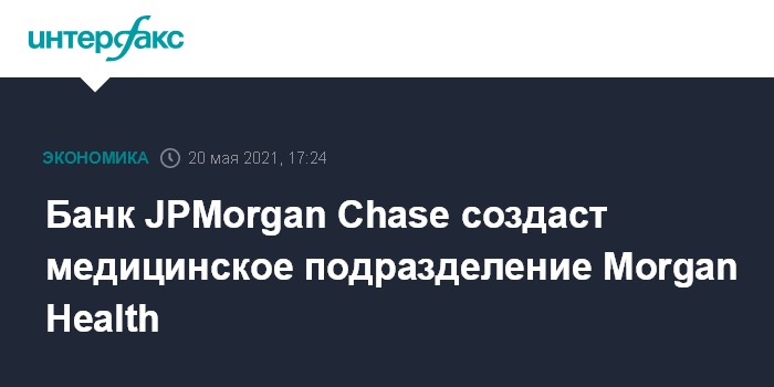Москва. 20 мая. INTERFAX.RU - Американский банк JPMorgan Chase & Co. сообщил, что создает новое подразделение Morgan Health, которое займется медицинскими программами для сотрудников.