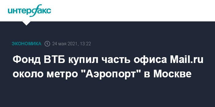 Фонд ВТБ купил часть офиса Mail.ru около метро "Аэропорт" в Москве