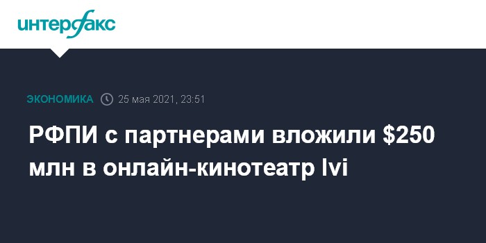 Москва. 25 мая. INTERFAX.RU - Консорциум инвесторов, в который вошли Российский фонд прямых инвестиций (РФПИ), "ВТБ Капитал", Millhouse Романа Абрамовича и Invest AG Александра Абрамова и Александра Фролова, Baring Vostok, Flashpoint и суверенные фонды Ближнего Востока, инвестировал $250 млн в онлайн-кинотеатр Ivi, сообщил РФПИ.