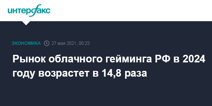 Москва. 27 мая. INTERFAX.RU - Объем российского рынка облачного гейминга в 2024 году составит $68 млн, увеличившись в 14,8 раза по сравнению с 2020 годом ($4,6 млн), а среднегодовой темп роста будет на уровне 94%. Такая оценка (базовый сценарий) приводится в исследовании, проведенном PwC в России совместно с сервисом GFN.RU.