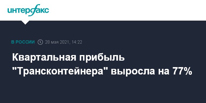 Москва. 28 мая. INTERFAX.RU - В I квартале 2021 года чистая прибыль группы "Трансконтейнер" по МСФО выросла на 76,6% в годовом исчислении и составила 3,381 млрд рублей, говорится в отчете компании.
