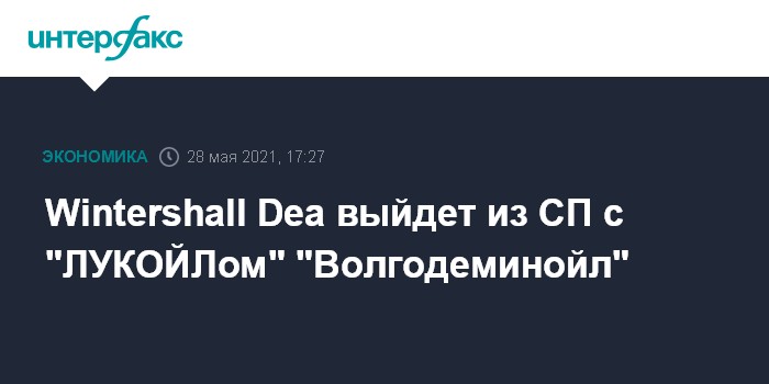 Москва. 28 мая. INTERFAX.RU -Германская Wintershall Dea, сообщила, что передает свою долю участия в совместном предприятии ООО СП "Волгодеминойл" партнеру по проекту - "дочке" "ЛУКОЙЛа" ООО "РИТЭК", которое станет единственным участником проекта.