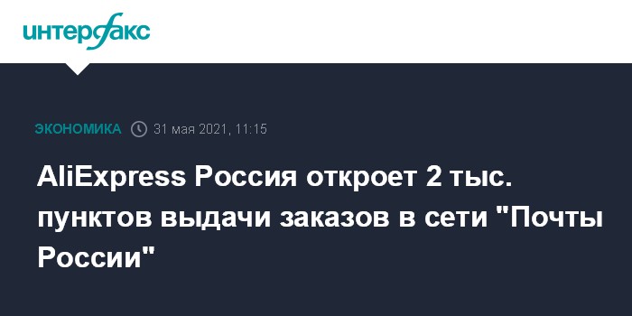 AliExpress Россия откроет 2 тыс. пунктов выдачи заказов в сети "Почты России"