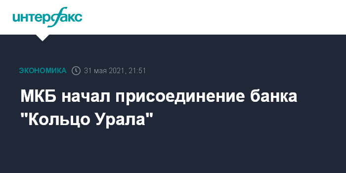 МКБ по итогам первого квартала 2021 года с активами в 3,131 трлн рублей занял 6-е место по размеру активов в рэнкинге "Интерфакс-100", подготовленном "Интерфакс-ЦЭА". Банк "Кольцо Урала" с активами в 34 млрд рублей занял 111-е место в этом рэнкинге.