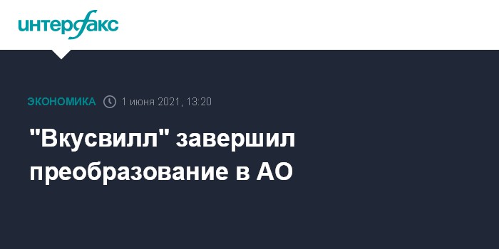 Москва. 1 июня. INTERFAX.RU - Операционная компания сети магазинов "Вкусвилл" завершила преобразование из ООО в акционерное общество (АО), свидетельствуют данные аналитической системы "СПАРК-Интерфакс".