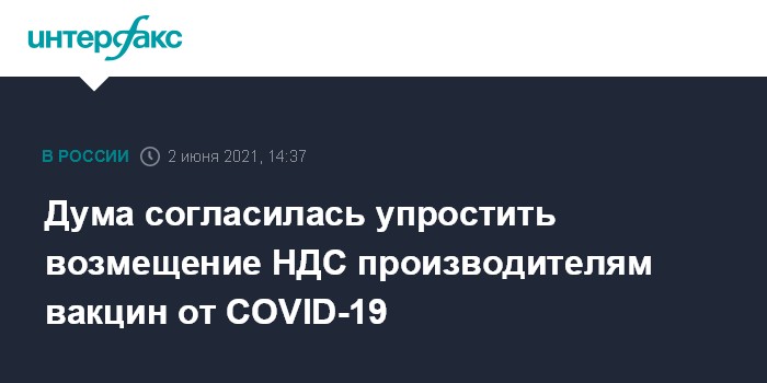 Принятый в первом чтении законопроект на период с 1 января 2021 года по 31 декабря 2024 года предоставляет производителям вакцины от COVID-19 право на упрощенный порядок возмещения НДС. Он предполагает возврат НДС, не дожидаясь окончания проверки декларации. При этом правом на ускоренный возврат НДС могут воспользоваться производители вакцины, информация о которых содержится в регистрационном удостоверении лекарственного препарата.