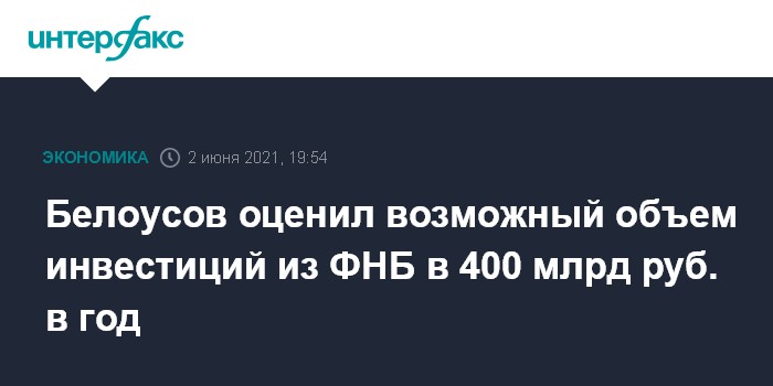 Белоусов оценил возможный объем инвестиций из ФНБ в 400 млрд руб. в год