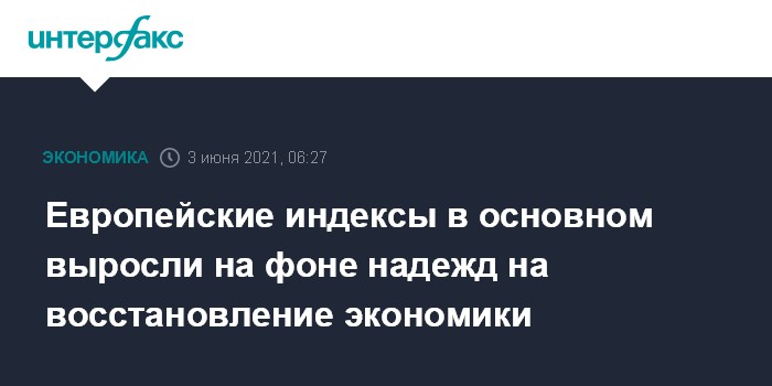 Москва. 3 июня. INTERFAX.RU - Фондовые индексы стран Западной Европы преимущественно выросли по итогам торгов в среду на фоне надежд инвесторов на ускорение темпов восстановления экономики еврозоны в ближайшие месяцы по мере расширения вакцинации от коронавируса.
