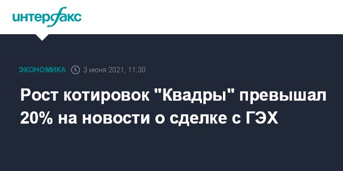 Рост котировок "Квадры" превышал 20% на новости о сделке с ГЭХ
