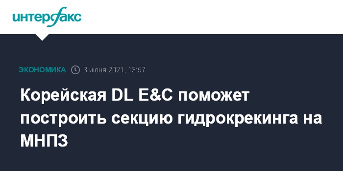 Москва. 3 июня. INTERFAX.RU - "Газпром нефть" и корейская DL E&C Co., Ltd на ПМЭФ заключили соглашение об участии корейской компании в строительстве секции гидрокрекинга будущего комплекса глубокой переработки нефти на Московском НПЗ.