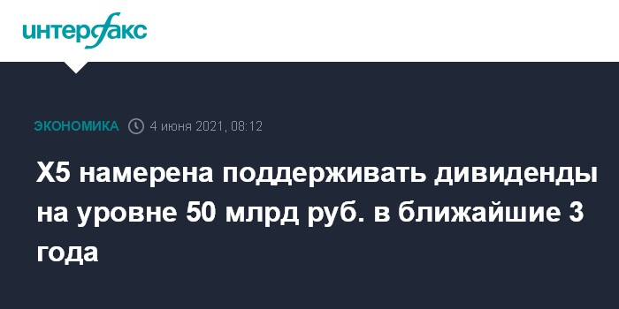 Москва. 4 июня. INTERFAX.RU - X5 Retail Group планирует в ближайшие три года поддерживать выплаты дивидендов на уровне 2020 года, максимум - наращивать выплаты на 10% в год.