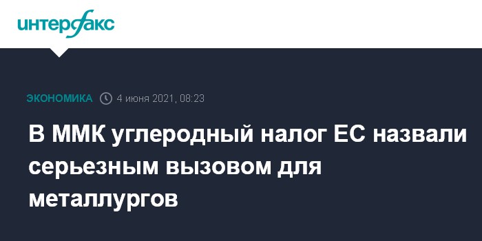 Москва. 4 июня. INTERFAX.RU - Углеродный налог, который ЕС планирует ввести на импорт продукции из стран с менее жестким углеродным регулированием, является серьезным вызовом для металлургической отрасли.