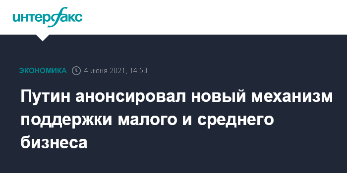 Путин анонсировал новый механизм поддержки малого и среднего бизнеса
