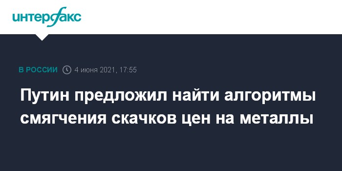Москва. 4 июня. INTERFAX.RU - Президент Владимир Путин предложил металлургам не обижаться на слово "нахлобучили" и принять участие в выработке алгоритмов действия для демпфирования скачков цен на металлы, возможно, через долгосрочные контракты с потребителями. Он сказал это на ПМЭФ.