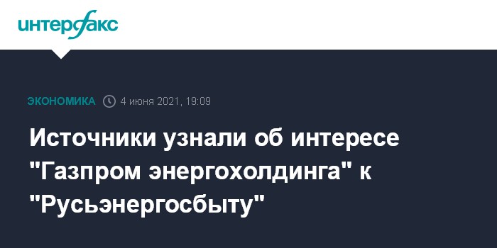 Источники узнали об интересе "Газпром энергохолдинга" к "Русьэнергосбыту"