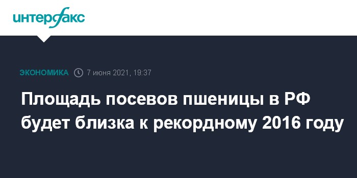По данным на 7 июня, которые приводит Центр агроаналитики, зерновые посеяны на 29 млн га, что составляет 99% от намеченного, и на 0,2 млн га больше, чем годом ранее. В частности, площади под пшеницей составили 12,9 млн га, что уже на 1,7% больше, чем намечалось, и на 0,6 млн га больше прошлогоднего.