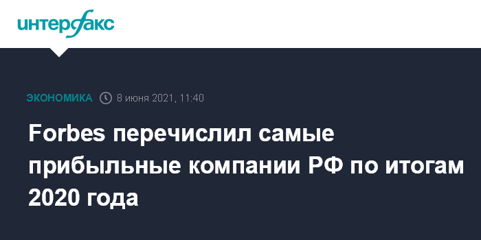 Москва. 8 июня. INTERFAX.RU - Forbes представил список самых прибыльных российских компаний по результатам 2020 года.