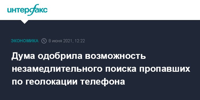 Москва. 8 июня. INTERFAX.RU - Госдума во вторник одобрила поправки, позволяющие начинать поиск пропавших без вести при помощи их мобильных телефонов сразу после получения заявления о пропаже.