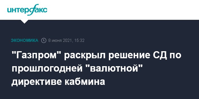 "Газпром" тогда анонсировал рассмотрение директивы советом директоров 12 октября и публично прокомментировал, что не допускает формирования избыточного уровня чистых валютных активов, регулярно проводя операции по продаже экспортной выручки на валютном рынке для обеспечения своих расходов в рублях, и при этом поддерживает необходимый запас валютной ликвидности для обслуживания обязательств в валюте. Итоги совета, тем не менее, концерн не публиковал.