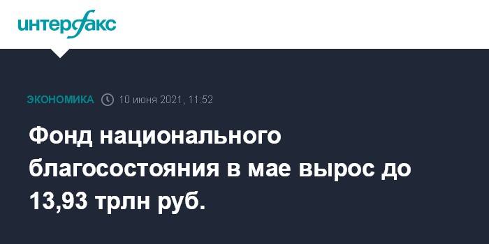 На 1 мая объем фонда составлял 13 трлн 825,43 млрд рублей, или 12% прогнозного ВВП на 2021 год, что эквивалентно $185,87 млрд. Таким образом, за май его объем увеличился на 112,65 млрд рублей.