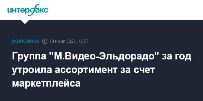 Москва. 10 июня. INTERFAX.RU - Группа "М.Видео-Эльдорадо" (ПАО "М.Видео") сообщила, что за год увеличила ассортимент втрое за счет развития маркетплейса электроники.
