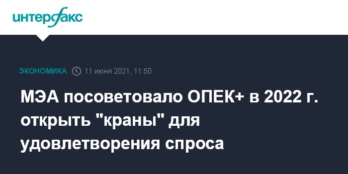 МЭА посоветовало ОПЕК+ в 2022 г. открыть "краны" для удовлетворения спроса