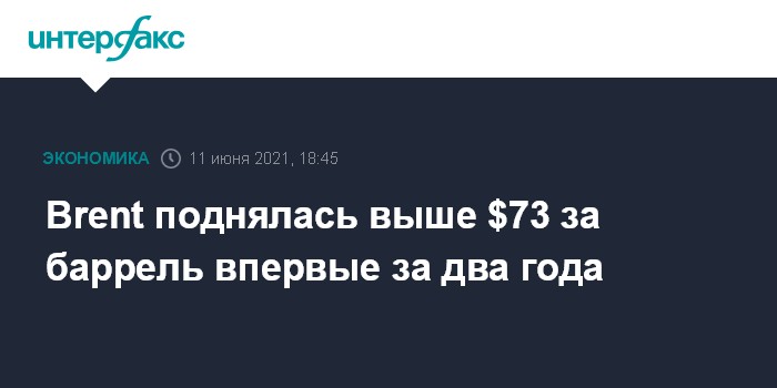 Москва. 11 июня. INTERFAX.RU - Нефть дорожает в ходе торгов в пятницу благодаря оптимизму трейдеров в отношении перспектив мирового спроса на сырье, при этом цена марки Brent поднялась выше $73 за баррель впервые с мая 2019 года.