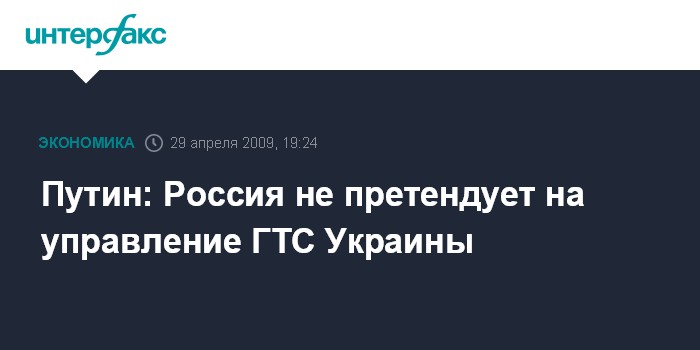 Москва. 29 апреля. INTERFAX.RU - Россия не претендует на управление украинской ГТС, заявил премьер-министр РФ Владимир Путин.