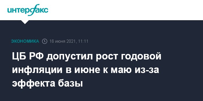 ЦБ РФ допустил рост годовой инфляции в июне к маю из-за эффекта базы
