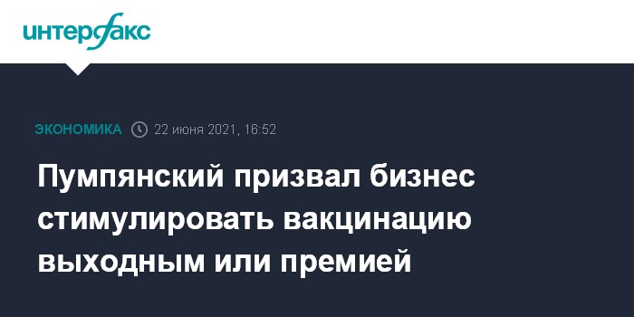 Пумпянский призвал бизнес стимулировать вакцинацию выходным или премией