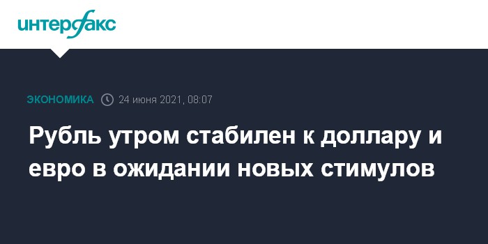 По мнению экспертов "Интерфакс-ЦЭА", рубль стабилен к доллару и евро на старте торгов 24 июня из-за отсутствия явных триггеров к движению. Рост цен на нефть эталонных марок, стимулировавший укрепление рубля накануне, замедлился в четверг утром.