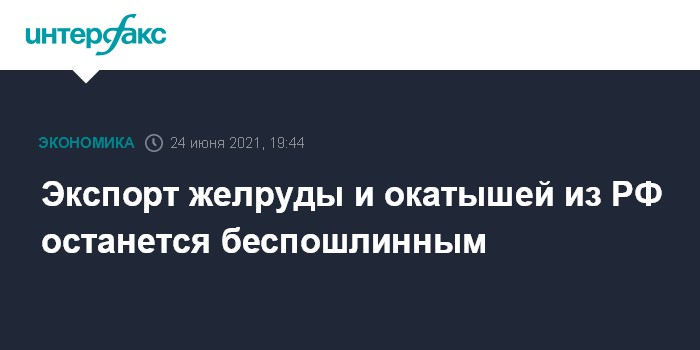 Экспорт желруды и окатышей из РФ останется беспошлинным