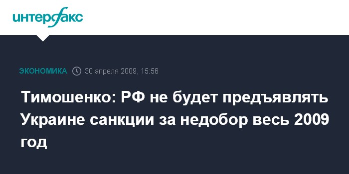Тимошенко: РФ не будет предъявлять Украине санкции за недобор весь 2009 год