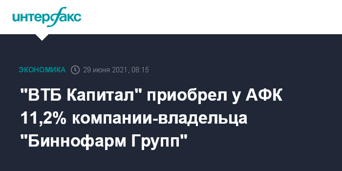 "ВТБ Капитал" приобрел у АФК 11,2% компании-владельца "Биннофарм Групп"