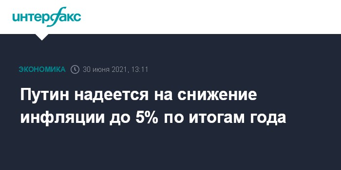 Москва. 30 июня. INTERFAX.RU - Достичь по итогам 2021 года целевого показателя в 4% по инфляции вряд ли удастся, признал на "прямой линии" 30 июня президент Владимир Путин.