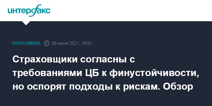 Москва. 30 июня. INTERFAX.RU - Ведущие страховщики готовы к вступлению в силу новых требований ЦБ к финансовой устойчивости и платежеспособности страховых компаний с 1 июля 2021 года. Требования обсуждались с рынком несколько лет и начнут действовать в отношении 70 из 160 действующих в РФ страховщиков. Однако ряд позиций положения Банка России "Об отдельных требованиях к финансовой устойчивости и платежеспособности страховщиков" (N 710-П) по оценке рисков их концентрации и взаимному влиянию все еще остаются спорными для страховщиков, показало обсуждение темы на Международном финансовом конгрессе. Страховщики надеются продолжить диалог с ЦБ о подходах к оценке рисков.