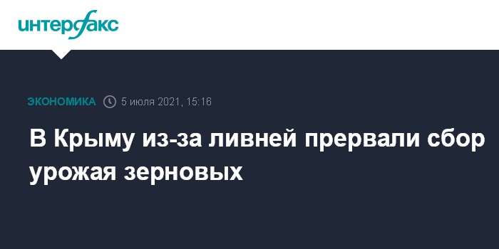 Москва. 5 июля. INTERFAX.RU - В Крыму прервали уборку зерновых из-за ливней, сообщил в фейсбуке вице-премьер - министр сельского хозяйства региона Андрей Рюмшин.