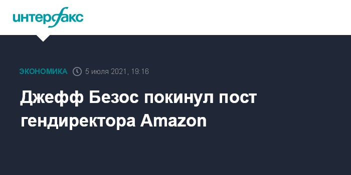Москва. 5 июля. INTERFAX.RU - Джефф Безос покинул пост главного исполнительного директора крупнейшего в мире интернет-ритейлера Amazon.