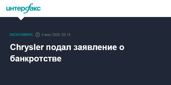 Москва. 4 мая. INTERFAX.RU - Одна из компаний "большой детройтской тройки" автопроизводителей США - Chrysler LLC на прошлой неделе подала заявление о добровольном банкротстве, пишет газета The Wall Street Journal.